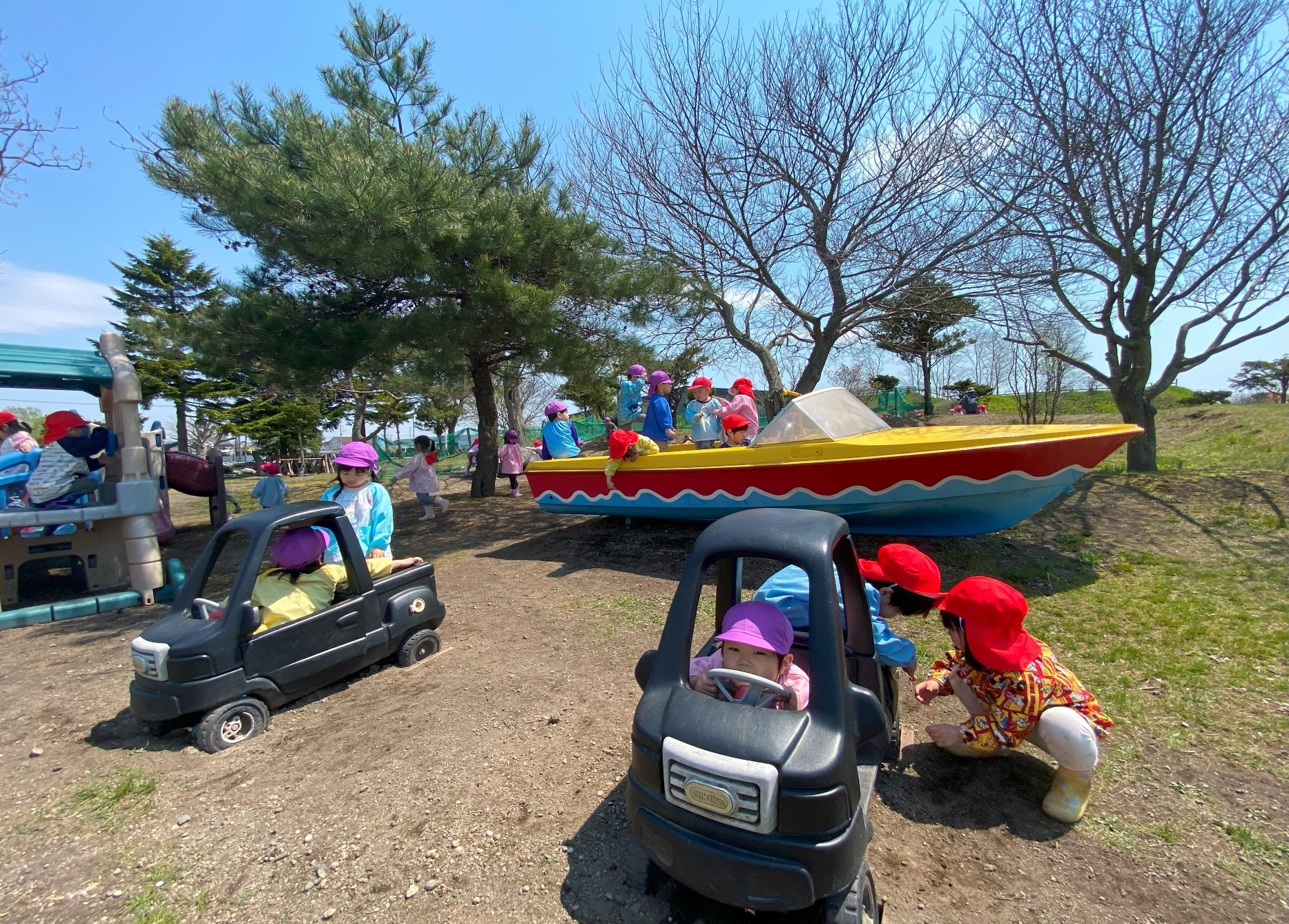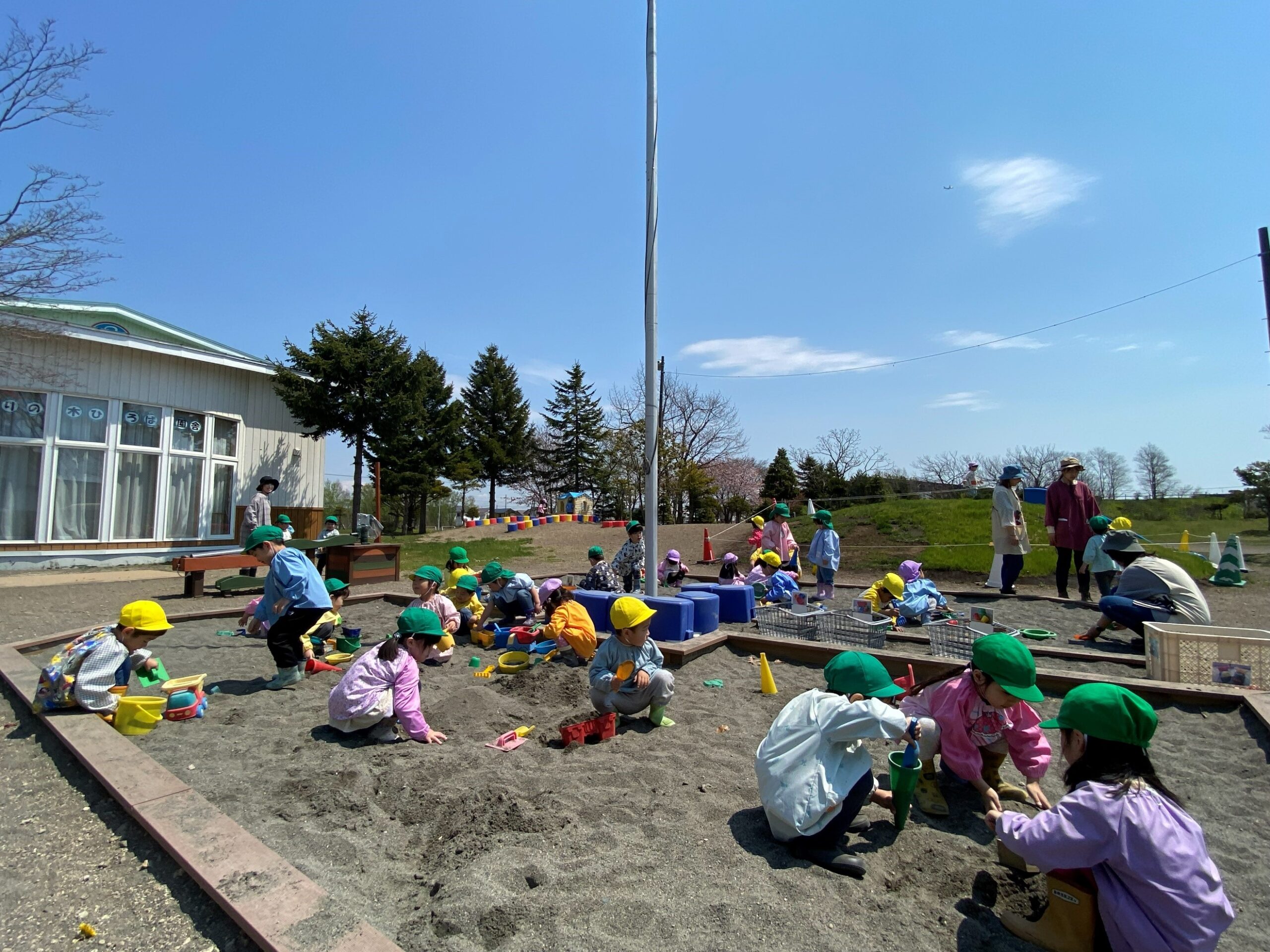 東西に延びている苫小牧の東部地区にあり、新興住宅街が立ち並ぶ中、広い敷地を活かし農園活動や自然に触れながらのびのびと戸外活動を行っています。